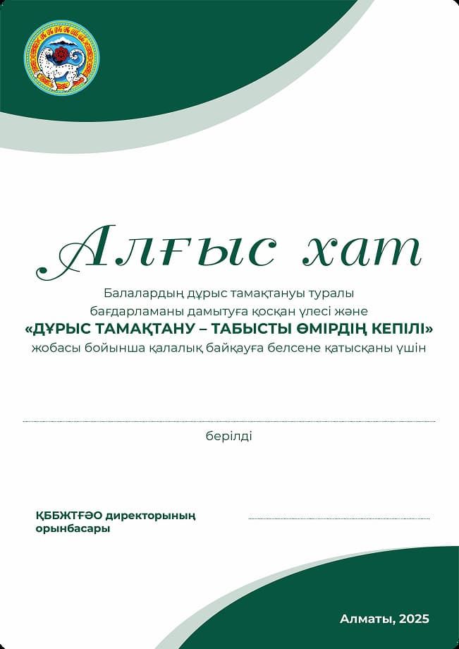 «Дұрыс тамақтану — табысты өмірдің кепілі» бағдарламасы жасөспірімнің ерекшеліктерін — тұрақты әдеттер, мотивация және жаңа білімге деген қызығушылық қалыптасатын кезеңді ескереді. Курс ұлттық білім беру басымдықтарына сәйкес келеді және салауатты, саналы және табысты ұрпақ мәдениеті қалыптасатын іргетасты нығайтады.